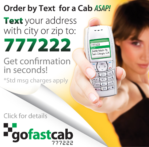 GoFastCab is a service that lets users order a cab anytime, without calling a cab company. Right now, you can text your address to 777222, and your order is confirmed instantly. Look for our iPhone and Android apps to be launched this spring!